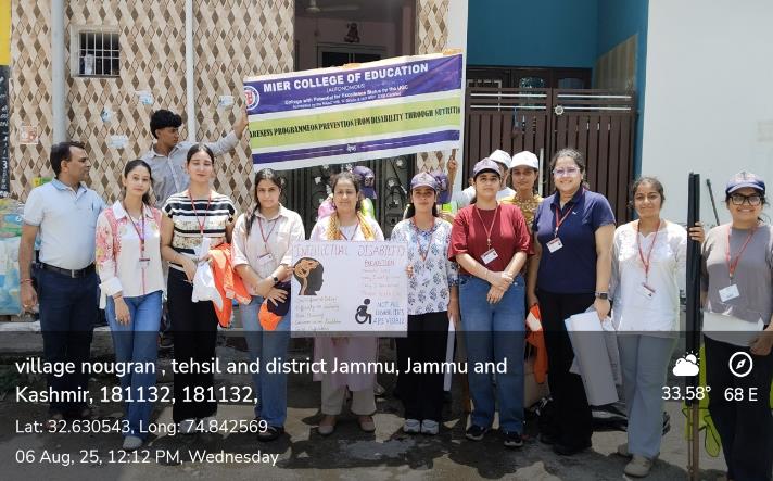 As part of its Community Based Rehabilitation (CBR) initiative, the School of Education (Special Education), MIER College of Education, conducted an awareness programme on “Prevention from Disability through Nutrition” on 6th August 2025 in Village Nowgran. The event aimed to educate the rural community about the role of proper nutrition in preventing disabilities and promoting overall well-being.