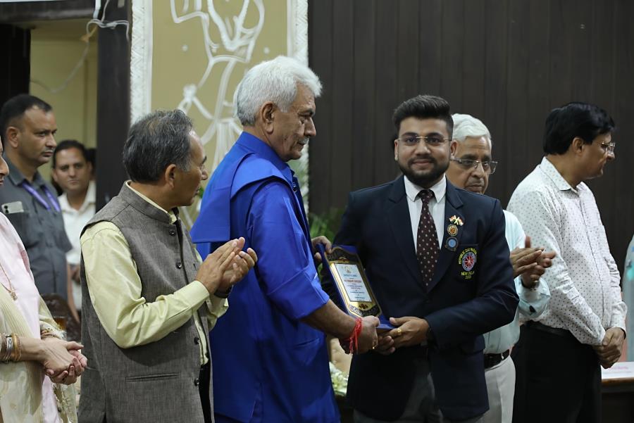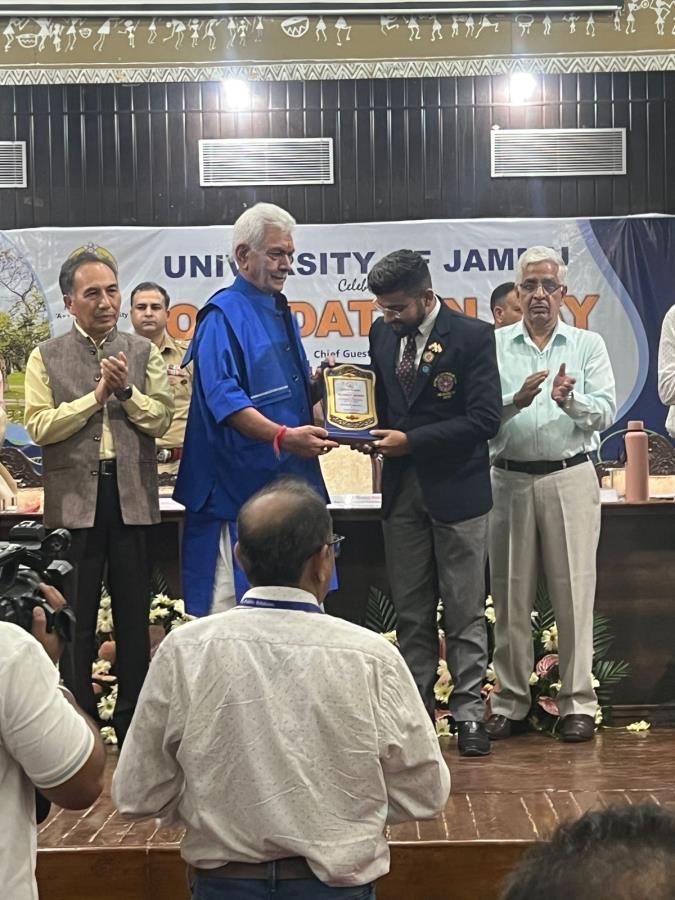 MIER College of Education proudly congratulates Mr. Nirbhay Khajuria, student of M.A. Psychology, for being felicitated in recognition of his Outstanding Achievements in NSS Activities Award during the Foundation Day Celebrations of the University of Jammu, held on 8th September 2025. The honour was conferred by Sh. Manoj Sinha Lieutenant Governor, J&K in the esteemed presence of the Vice-Chancellor and other eminent dignitaries of the university.