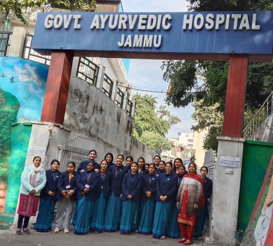 The visit was organised on-site by Dr. Vandana Dogra, Medical Superintendent of the Government Ayurvedic Hospital in Jammu, alongside Dr. Ramesh and Ms. Suchi, a Yoga Instructor. Initially, Mrs. Suman Devi briefed the students on the aims and timetable of the visit, providing context for their learning experience.