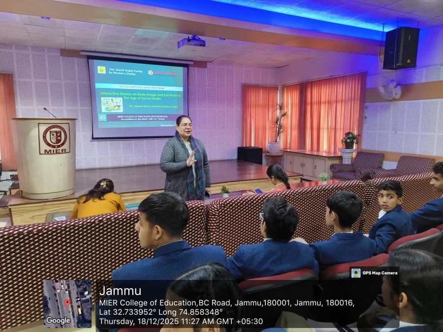 The Smt. Shanti Gupta Centre for Women’s Studies (SSGCWS), MIER College of Education, in collaboration with Model Academy School, organised a one-day Adolescent Education Programme for Class VIII students on the theme “Body Image and Self-Worth in the Age of Social Media: Promoting Positivity, Healthy Habits and Gender Sensitivity among Adolescents.” The programme aimed to raise awareness among adolescents about the psychological and social challenges of growing up in a digitally mediated world.